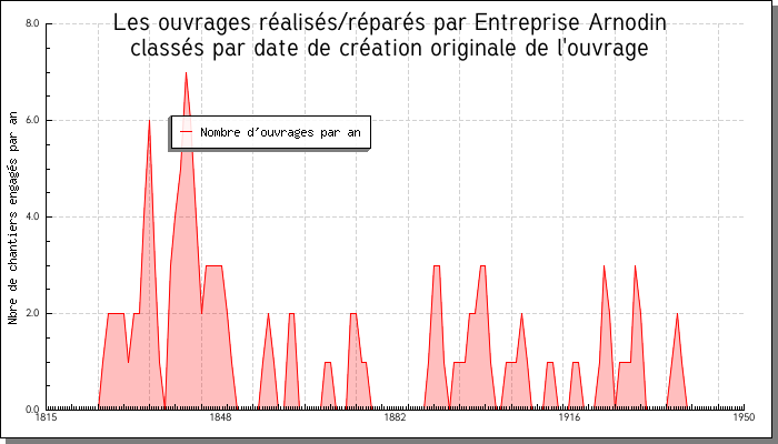 Attention, la courbe ci-dessous est créée dynamiquement à partir de la base des ouvrages. Elle peut donc être amenée à évoluer, en fonction du renseignement de la base. Par ailleurs, nous avons considéré qu'un chantier moyen durait 2 ans. |