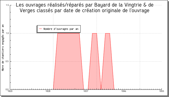 Attention, la courbe ci-dessous est créée dynamiquement à partir de la base des ouvrages. Elle peut donc être amenée à évoluer, en fonction du renseignement de la base. Par ailleurs, nous avons considéré qu'un chantier moyen durait 2 ans.