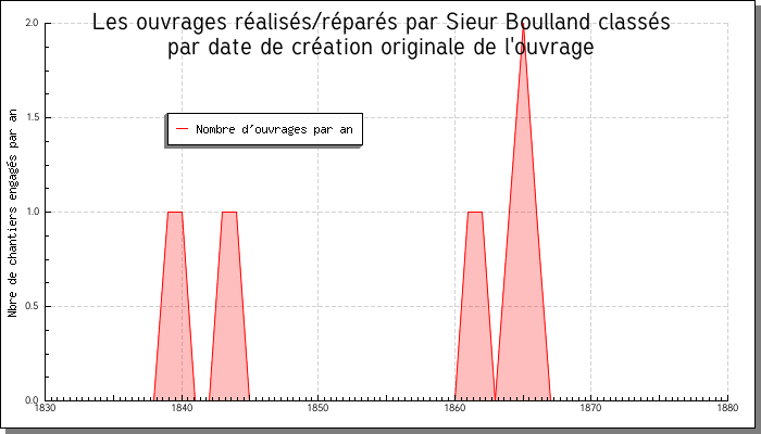 Attention, la courbe ci-dessous est créée dynamiquement à partir de la base des ouvrages. Elle peut donc être amenée à évoluer, en fonction du renseignement de la base. Par ailleurs, nous avons considéré qu'un chantier moyen durait 2 ans.