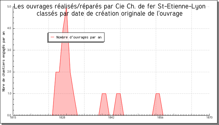 Attention, la courbe ci-dessous est créée dynamiquement à partir de la base des ouvrages. Elle peut donc être amenée à évoluer, en fonction du renseignement de la base. Par ailleurs, nous avons considéré qu'un chantier moyen durait 2 ans. |