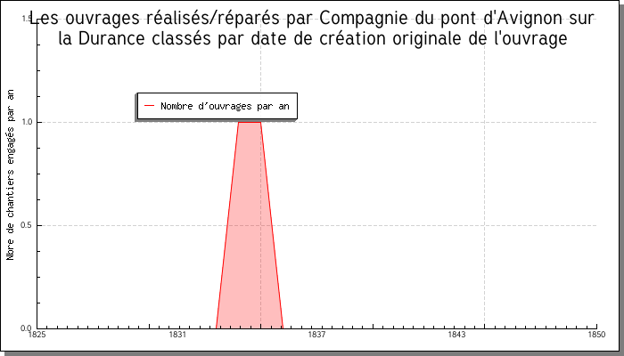 Attention, la courbe ci-dessous est créée dynamiquement à partir de la base des ouvrages. Elle peut donc être amenée à évoluer, en fonction du renseignement de la base. Par ailleurs, nous avons considéré qu'un chantier moyen durait 2 ans. |