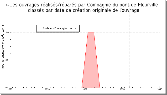 Attention, la courbe ci-dessous est créée dynamiquement à partir de la base des ouvrages. Elle peut donc être amenée à évoluer, en fonction du renseignement de la base. Par ailleurs, nous avons considéré qu'un chantier moyen durait 2 ans. |