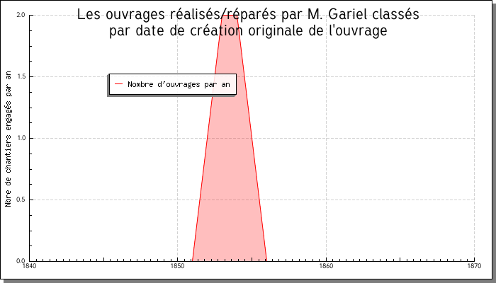 Attention, la courbe ci-dessous est créée dynamiquement à partir de la base des ouvrages. Elle peut donc être amenée à évoluer, en fonction du renseignement de la base. Par ailleurs, nous avons considéré qu'un chantier moyen durait 2 ans.