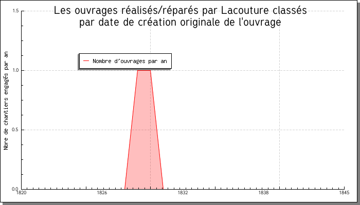 Attention, la courbe ci-dessous est créée dynamiquement à partir de la base des ouvrages. Elle peut donc être amenée à évoluer, en fonction du renseignement de la base. Par ailleurs, nous avons considéré qu'un chantier moyen durait 2 ans.