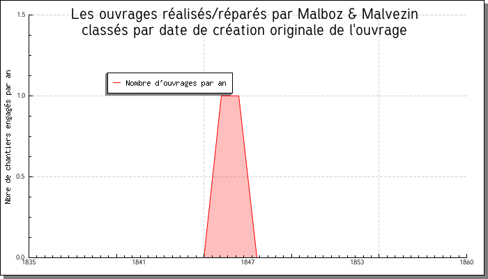 Attention, la courbe ci-dessous est créée dynamiquement à partir de la base des ouvrages. Elle peut donc être amenée à évoluer, en fonction du renseignement de la base. Par ailleurs, nous avons considéré qu'un chantier moyen durait 2 ans.