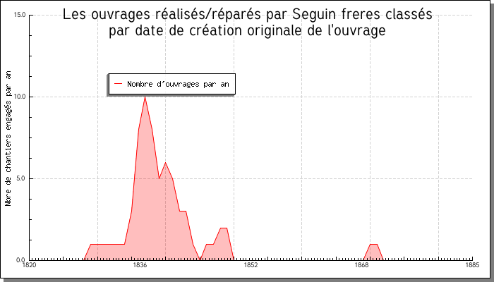 Attention, la courbe ci-dessous est créée dynamiquement à partir de la base des ouvrages. Elle peut donc être amenée à évoluer, en fonction du renseignement de la base. Par ailleurs, nous avons considéré qu'un chantier moyen durait 2 ans. |