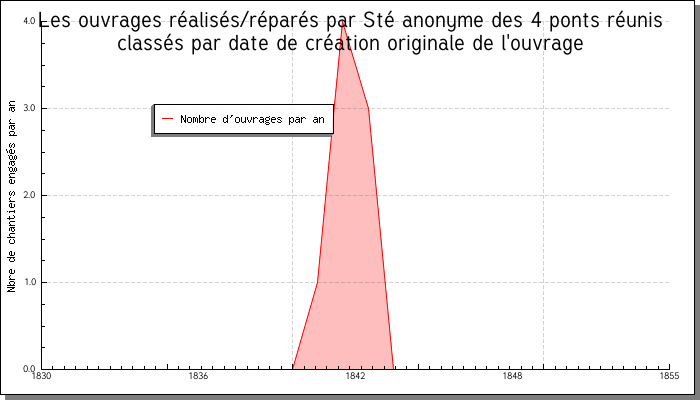 Attention, la courbe ci-dessous est créée dynamiquement à partir de la base des ouvrages. Elle peut donc être amenée à évoluer, en fonction du renseignement de la base. Par ailleurs, nous avons considéré qu'un chantier moyen durait 2 ans.