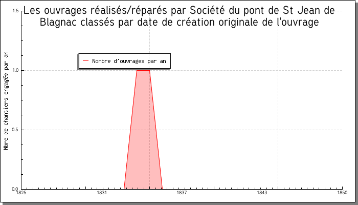 Attention, la courbe ci-dessous est créée dynamiquement à partir de la base des ouvrages. Elle peut donc être amenée à évoluer, en fonction du renseignement de la base. Par ailleurs, nous avons considéré qu'un chantier moyen durait 2 ans. |