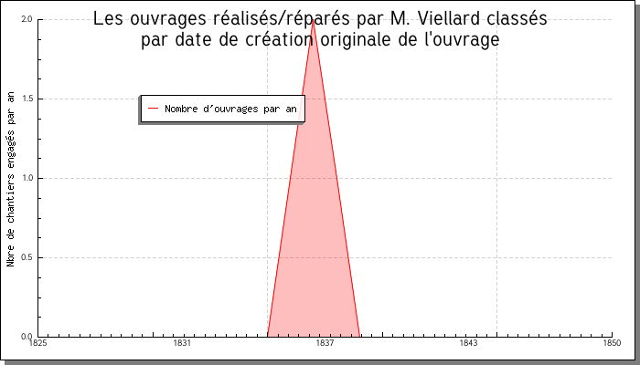 Attention, la courbe ci-dessous est créée dynamiquement à partir de la base des ouvrages. Elle peut donc être amenée à évoluer, en fonction du renseignement de la base. Par ailleurs, nous avons considéré qu'un chantier moyen durait 2 ans.