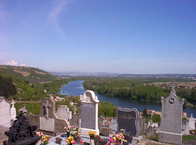 Le cimetière est adossé à la colline sur son versant Nord. Sa vue plongeante sur la vallée du Rhône est superbe.
