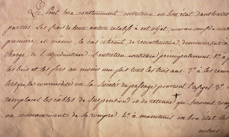 Bernard Marrey rajoute dans son livre (3), que le comte d'Argout, ministre du Commerce et des Travaux Publics, adresse le 24 Aout 1831 une circulaire aux préféts : Afin de donner de l'ouvrage aux ouvriers, elle leur enjoignait d'examiner avec les ingénieurs en chef du département, quels étaient les bacs, qui, à raison de leurs produits, pourraient être remplacés par des ponts ... et d'aller au devant (des "spéculateurs")..., d'éveiller leur attention sur les projets dont l'exécution pourrait avoir des avantages pour eux".