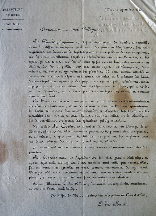 A cette époque, ceci donna une réelle autorité à l'administration des Ponts et Chaussées, elle-même fortement soutenue par le corps des Ponts, grand ordonnateur de l'infrastructure du système de communication français, mais avec une grande limitation du fait de l'absence de moyens financiers pour réaliser celle-ci.