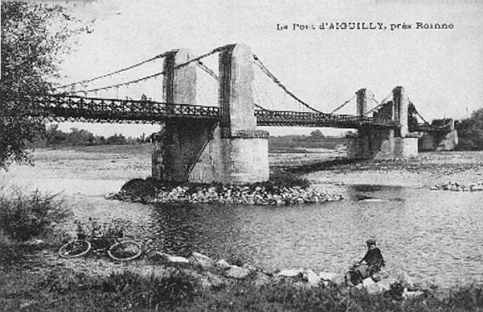 La construction du pont d'Aiguilly sur la Loire, au service de la route départementlae 10 de Roanne à Digoin, est autorisée par le bulletin de lois du 13/11/1839 (2).