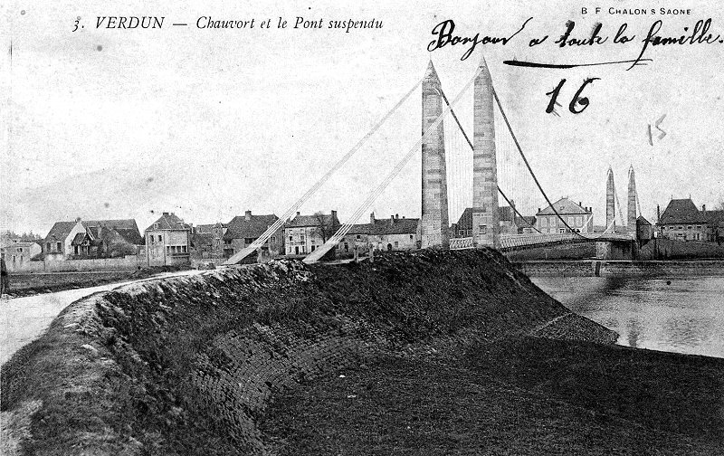 Un nouveau pont en maçonnerie est construit en 1928 à côté de l' ancien, dont seuls les pylônes de l'ancien pont de la rive de Chauvort seront conservés et d'ailleurs toujours visibles, comme le montre la photo ci-contre. Ce nouveau pont sera détruit en 1944