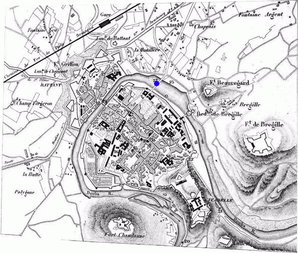 L'un de ces ponts est le pont suspendu de Chaprais, qui sera remplacé vers 1883 par un ouvrage de pierre qui, détruit lors de la guerre de 1940-45, puis reconstruit en 1947, deviendra l'actual pont de la République. Selon (3), qui confirme qu'en 1841, le pont suspendu est alors de construction récente, nous savons par ailleurs que les piles qui soutiennent ce pont sont réalisées en pierre de Damparis, ce qui est gage de perennité de l'ouvrage !