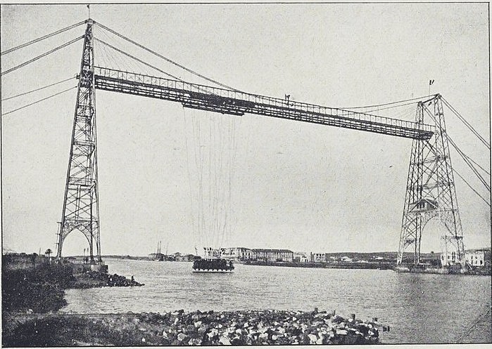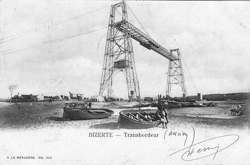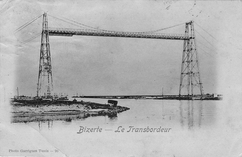Le pont de Bizerte, construit de 1896 à 1898 par l'Entreprise Arnodin à l'entrée du canal maritime de ce port, pour remplacer un service de ferry-boats, présentait une portée de 109 mètres, et son tablier, situé à 44 mètres au dessus du plan d'eau, supportait une nacelle dont la charge était limitée à 80 tonnes. Cet engin procura, depuis sa mise en service (juin 1898), une économie considérable sur les bacs qu'il remplaçait.