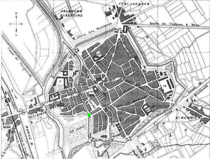 La situation hydrologique de Châlons en Champagne est assez complexe et a largement évolué dans le temps. Nous avons trouvé environ 34 appellations différentes pour 17 emplacements différents.