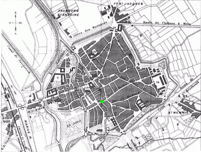 La situation hydrologique de Châlons en Champagne est assez complexe et a largement évolué dans le temps. Nous avons trouvé environ 34 appellations différentes pour 17 emplacements différents.