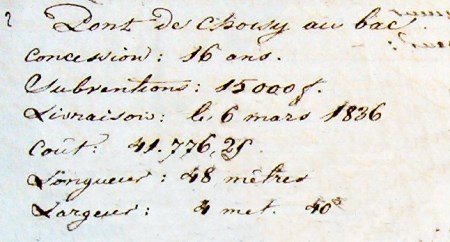 Décret, le : 22/7/1834 - Ouverture au public : 6/3/1836 - Durée concession : 16 ans - Coût de construction : 41776 Fr - Subvention : 15000 Fr