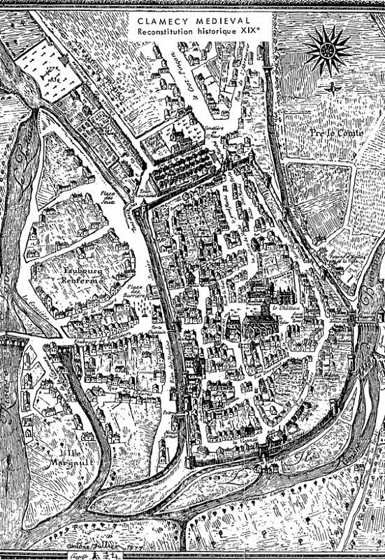 Carte médiévale de Clamecy reconstituée en 1872 (issu de (9)) |