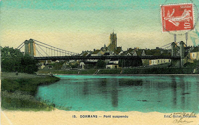 La construction de ce pont, situé sur la route nationale n°13 de Reims à Dormans, et son adjudication à M. Bayard le 25/3/1830 furent approuvées par décret le 16/8/1830. Ce pont est par ailleurs mentionné dans le livre en référence daté de 1857.