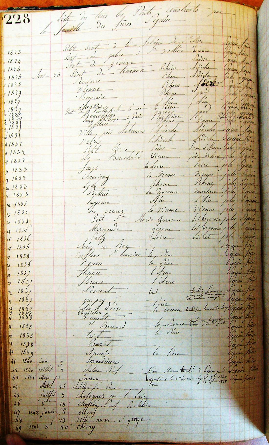 Par ailleurs, la construction de ce pont est mentionnée brièvement dans l'inventaire des ponts construits par les frères Seguin page 228 du grand livre de compte (41J87) selon (4).