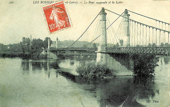 La rivalité entre les deux communes de Gennes et des Rosiers, de part et d'autre de la Loire était connue et l'établissement du pont raviva celle-ci. Quand en 1846, il fut question de relier les deux rives par un pont suspendu, tout le monde fut d’accord. Les Rosiers y contribuèrent pour 300.000 francs, Gennes pour 70.000. Lors de sa construction, le pont s'écroula.