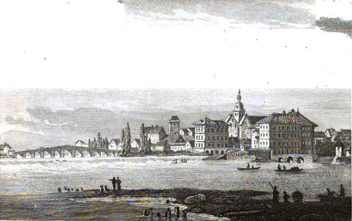 Ce ne fut que vers le milieu du siècle dernier (XVIIIème) que l'on jeta les fondements du pont actuel, non moins remarquable par sa solidité que par le nombre et l'élévation de ses arcades. La création d'un double trottoir, au moyen de la suppression des anciens parapets, est une de ces améliorations récentes que l'on ne saurait trop louer, pour la commodité qu'elle procure et le goût qui y règne. Le quai qui sépare le pont des moulins de Gray a aussi changé d'aspect : à la place d'une mare infecte, on admire aujourd'hui la belle disposition du terrain qui s'étend depuis la route jusqu'à la rivière.