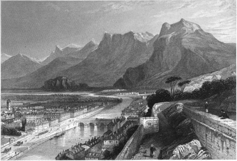Sur la rive droite, la Porte de France où aboutit la route de Lyon au pieds du mont Rabot, et la Porte de Saint-Laurent à l'Est qui conduit à Chambery.