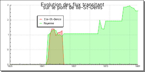 L'analyse de ces graphes mérite de prendre en compte a minima les évènements ayant trait à l'ouvrage (destruction, crues, reconstruction) mais aussi présence d'un nouvel ouvrage à proximité, de fait \"concurrent\". Malgré cela, ces courbes sont à l'image de l'activité de la ville ou de la région considérée.