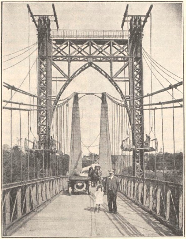 En 1924 un concours est remporté par l'Entreprise Arnodin pour la reconstruction du pont, pour un montant de 1 590 000 Fr selon (1). Celui-ci est construit tout en maintenant l'utilisation de l'ancien pont. Celui-ci est construit tout en maintenant l'utilisation de l'ancien pont.