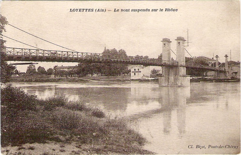 L'ordonnance royale autorisant la construction du pont suspendu de Loyettes sur le Rhône entre les Départements de l'Ain et de l'Isère, en amont de Lyon, est datée du 19/6/1837.