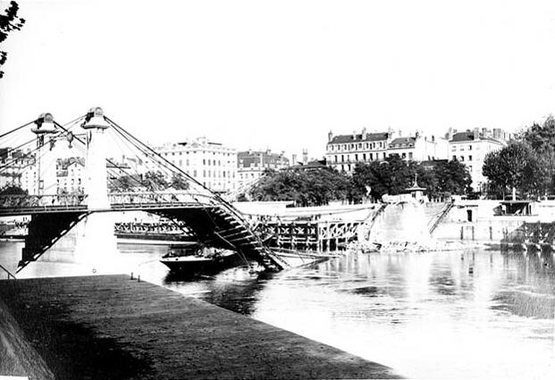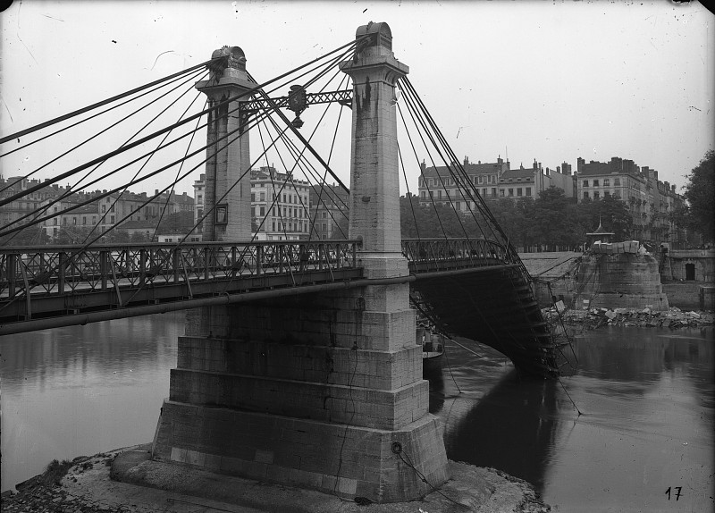 Le 1° Septembre 1944, son tablier est complètement détruit. Image provenant des archives départementales du Rhône. |