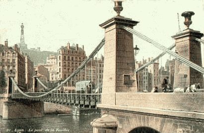 Le pont suspendu de La Feuillée sur la Saône à Lyon, est ouvert au public le 28 Septembre 1831. Ce pont est situé en plein coeur de Lyon. Il relie le vieux Lyon - port de la Feuillée, quartier de Saint-Paul -, à la presqu'île - Quartier de la place des Terreaux.