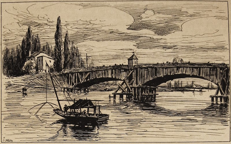 L'ingénieur J.F Lallié (ou Lallier), toujours pour le compte de la compagnie Perrache, conçut alors un pont de bois plus robuste de 11 travées, et 250m de long. Il fut ouvert en 1792. Il était à peine achevé, lorqu'éclata le siège de Lyon : le pont fut alors coupé, les gardes-fous arrachés et les ferrures enlevées. de grand dégâts furent aussi commis sur la presqu'île; d'immenses plantations d'arbres, que la Compagnie Perrache y avait faites, furent complètement rasées. |