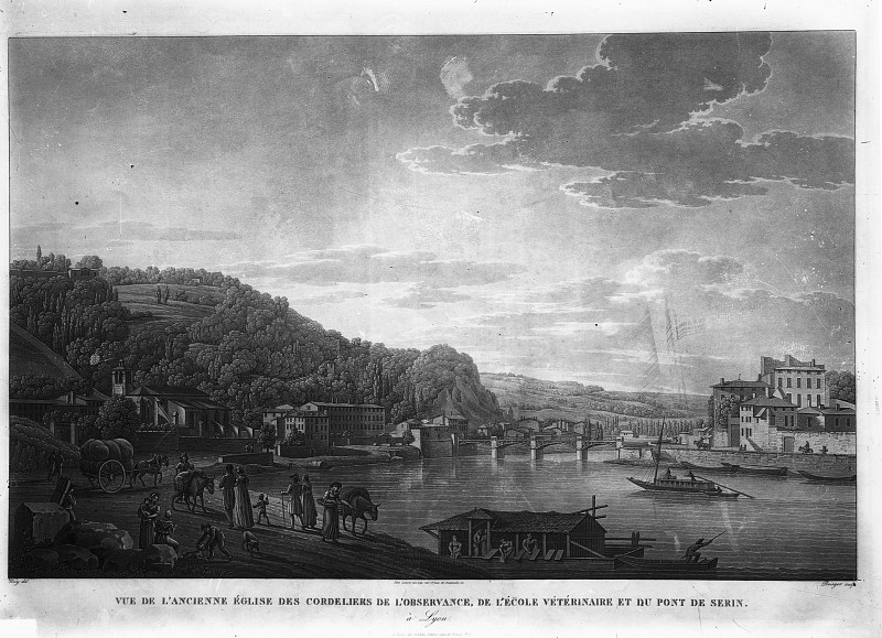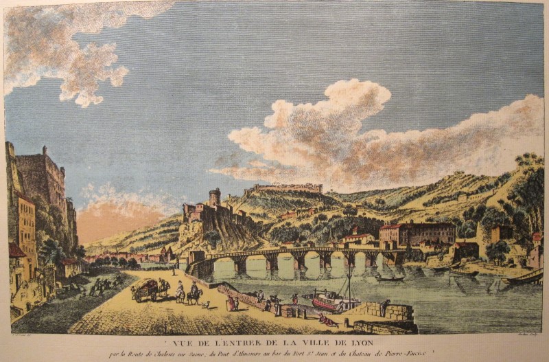 Propriété des Hospices Civils de Lyon, ce pont en bois, long de 300 pieds, disparut, entraîné presque intégralement (les 5 arches centrales avec leur pile, sur les 7 que comptait le pont) par les glaces dans l’hiver le 17 Janvier 1789.