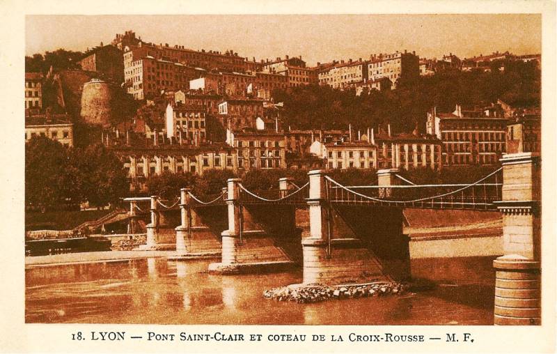 Construit en 1846 à proximité de l'actuel Pont de Lattre de Tassigny, sur le Rhône à Lyon, le Premier pont suspendu à Saint-Clair (Rhône-Lyon) s'appela d'abord Pont Louis Philippe. Il comportait deux piles surmontées de colonnes égyptiennes et avait 7 mètres de large.