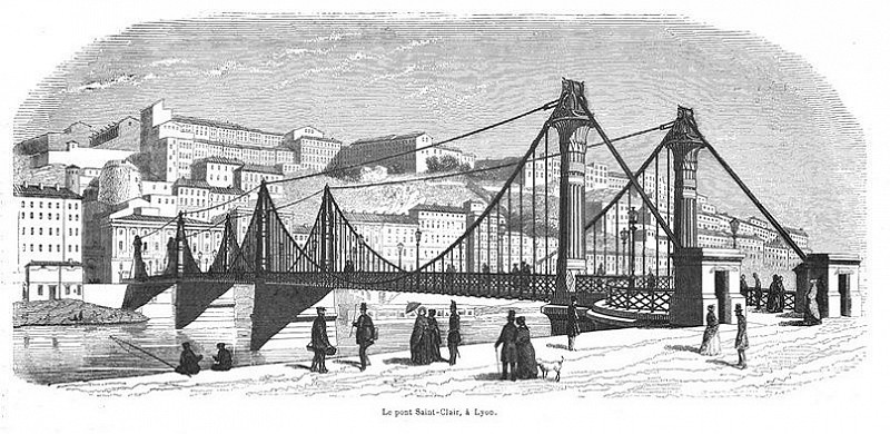 Premier pont suspendu à Saint-Clair (Rhône-Lyon) - 1846