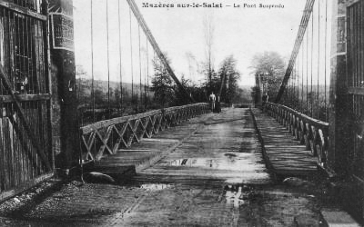 La construction d'un pont suspendu à Mauzac sur la Garonne, au service du chemin d'interêt commun n°22 a été autorisé par le bulletin de lois (1) le 21/7/1851. Selon (2), il fut livré au public le 6/8/1852, accompagné d'une concession de 59 ans et 3 mois.