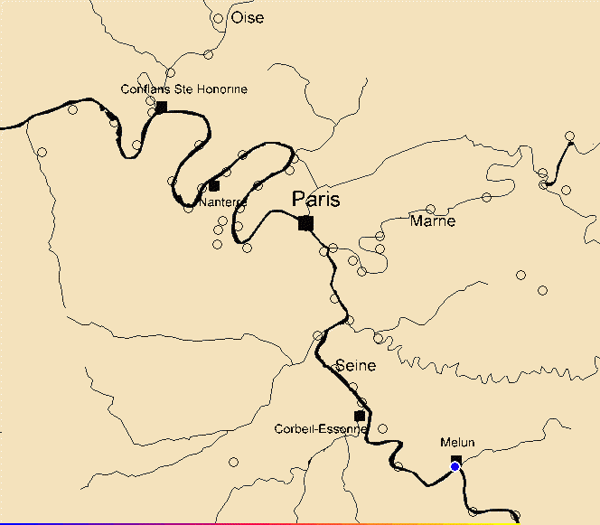 Fleuve franchi : la Seine, département : Seine-et-Marne, à proximité : Melun, situé Pont aux Moulins