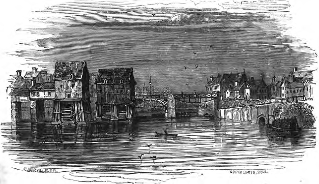 Situé sur le grand bras de la Seine, le "Pont-aux-Moulins", bâti au XIIème siècle, porte déjà des moulins au XIIIème siècle.