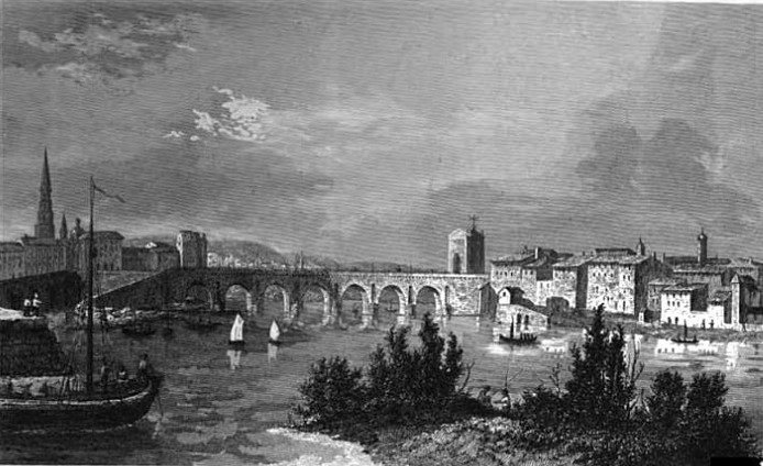 Extrait du site : En 1304, Philippe Le Bel ordonne sa construction, il est achevé en 1335. II mesure 205 mètres de long et possède un tablier plat, chose rare au Moyen-Age. Sept arches ogivales, munies de becs, sont percées de hautes ouvertures afin d'évacuer davantage d'eau pendant les crues. Autrefois, une tour carrée s'élevait à chaque extrémité pour défendre l'entrée de la ville. Celle de la rive droite, où logeait le bourreau, est détruite en 1663 afin de construire le Palais Episcopal. L'autre est démolie en 1701 et remplacée par un arc de triomphe célébrant une victoire de Louis XIV. Tel le pont Saint Bénézet d'Avignon, le pont Vieux possédait une Chapelle sur la quatrième pile, dédiée à Sainte Catherine, protectrice des bateliers.