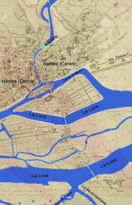 Fleuve franchi : l'Erdre, département : Loire-Atlantique, à proximité : Nantes, situé Pont Morand
