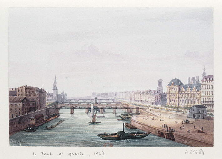 "Cette passerelle qui a reçu le nom d'Arcole après la révolution de 1830, était située dans l'emplacement du pont actuel de ce nom.