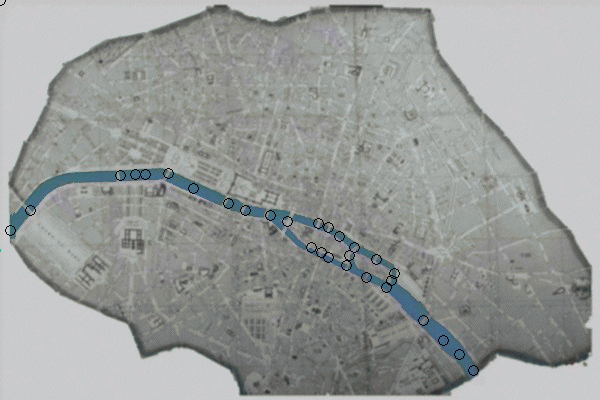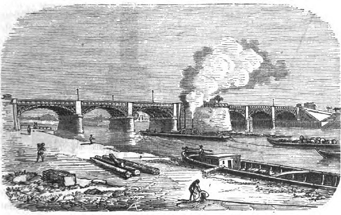 "Durant les dix premières années qui ont suivi la chute de l'empire aucun pont n'a été construit dans Paris. Le pont de Grenelle est le premier qui ait été entrepris, et encore ce pont, qui était alors en dehors de l'enceinte, a-t-il été concédé à une compagnie qui s'est engagée à le construire à ses frais en même temps que le port et la gare du même nom, moyennant l'abandon d'un droit de péage à recevoir pendant quarante-sept ans pour le passage sur le pont et pour le stationnement des bateaux et des marchandises dans la gare et sur le port.