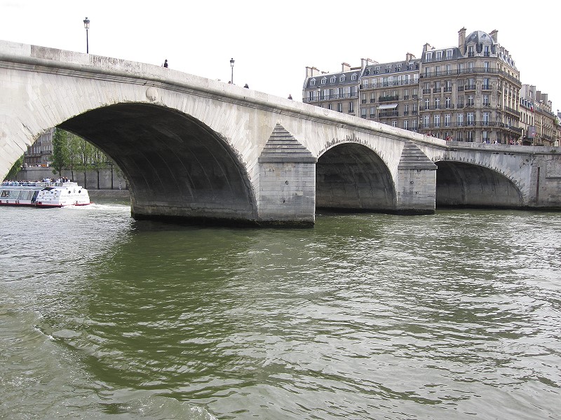 Ce pont est entièrement en pierre de taille. La première pierre a été posée le 25 octobre 1685. A cette époque, treize médailles ont été placées dans une boite en bois de cèdre qui elle-même a été renfermée dans une boîte en plomb, et toutes deux ont été scellées dans une pierre de la neuvième assise de la pile la plus rapprochée du palais des Tuileries.