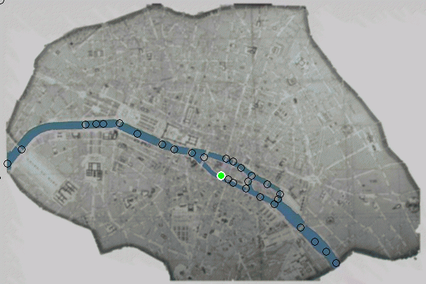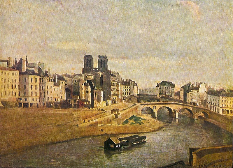 En 1378, on construit le Pont Saint-Michel, du nom d'une chapelle du Palais qui en était voisine. Détruit plusieurs fois par les grandes eaux, il fut reconstruit en 1618 tel qu'il est au début du XIXème siècle, avec toutefois deux lignes de maisons qui disparurent en 1808. Il est en reconstruction en 1857 pour le mettre dans l'alignement du boulevard Sébastopol.