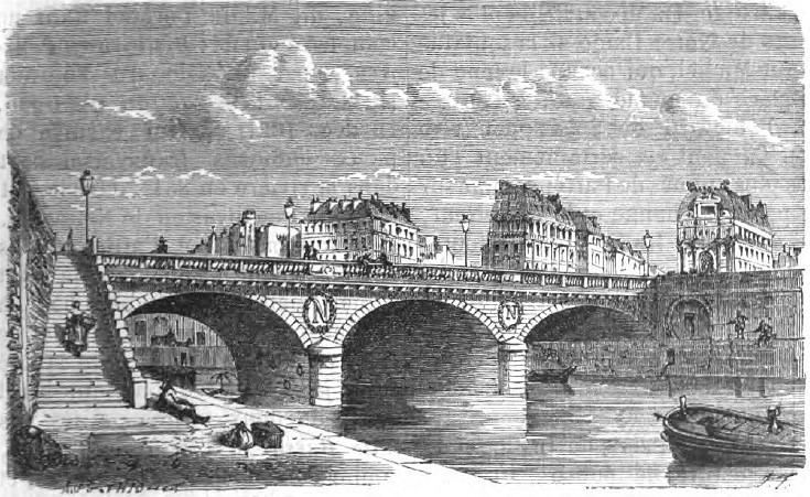 Ce pont dont l'alignement ne s'accordait pas avec la direction donnée au boulevard de Sébaatopol, rive gauche, a été remplacé en 1857 par celui qui existe aujourd'hui."