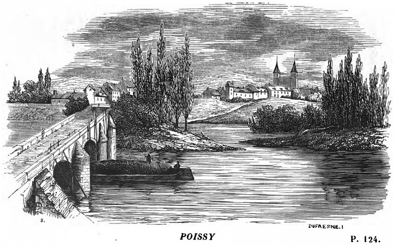 Le pont de Poissy, cité autrefois comme une merveille[4], est encore de nos jours une construction remarquable et digne de curiosité. Quoique notablement diminué, il est encore d'une longueur respectable et relie Poissy à laroute qui conduit à Triel. Les arches, battues continuellement par les flots, semblent défier le temps, et la Seine caressera longtemps encore la base inébranlable du colosse sans faire osciller une seule de ses pierres.