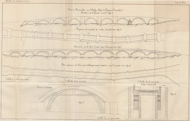 Le pont de Rivesaltes, sur la rivière de l'Agly au service du chemin de Vingrau, était de construction ancienne et d'une irrégularité frappante, reflétée dans les schémas de la figure-ci-contre.